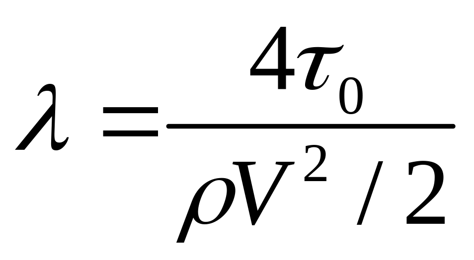 λ есть величина, пропорциональная отношению напряжения от силы трения на стенке трубы к динамическому давлению, определяемому по средней скорости.