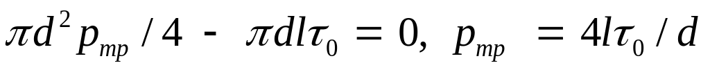 где τ0 — напряжение трения на стенке трубы, Ртр=Р1-Р2,
