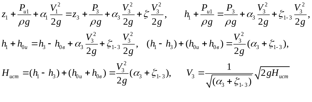 1-1: z1= h1, P1 > Ратм, V1 = 0, "3-3": z3=0,Р3, V3=Vс.