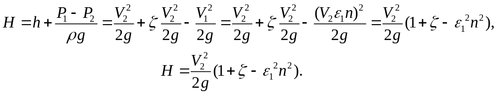 Подставим в уравнение Бернулли и получим зависимость напора истечения и скорости: