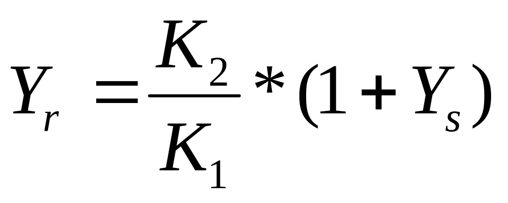 В цьому випадку необхідно здійснювати перерахунок доходності в єдину валюту для обох проектів, що порівнюються, враховуючи, що доходність у гривнях і доходність в іноземній валюті пов'язані таким співвідношенням: