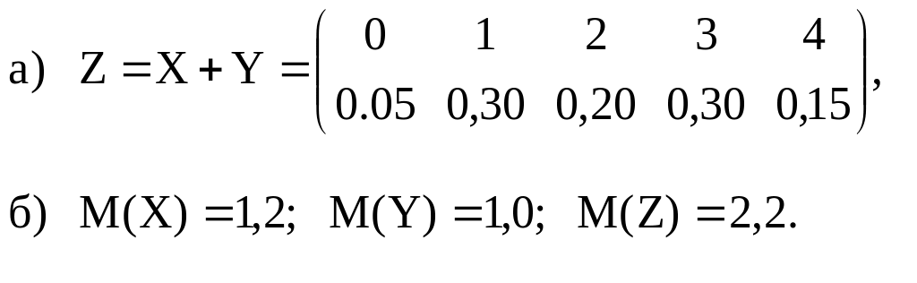 Составить закон распределения случайных величин 2Х и Х + Y. Убедиться в том, что 2Х Х + Y, но М(2Х) = М(Х + Y).