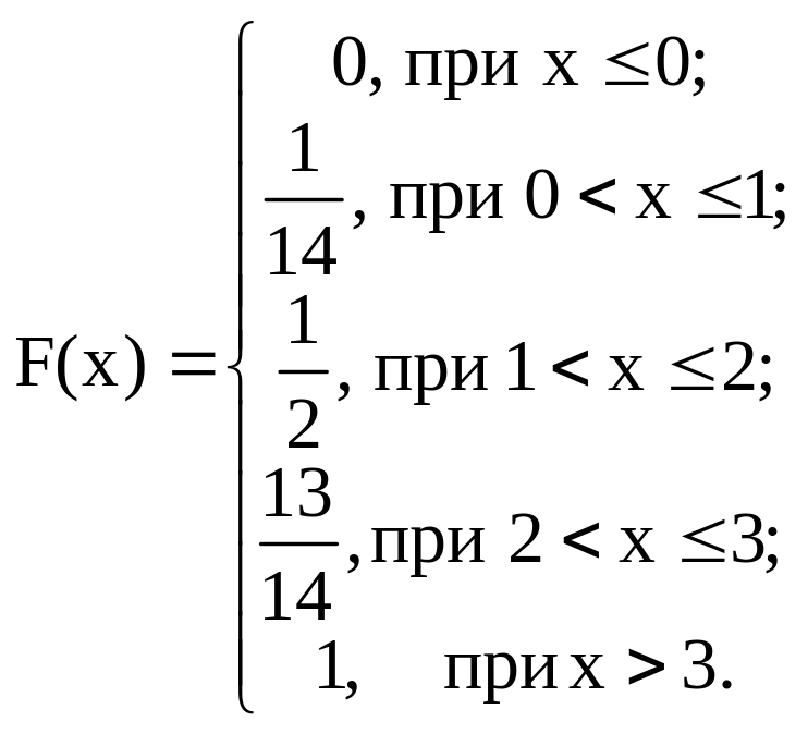 В магазине продаются 5 отечественных и 3 импортных телевизора. Составить закон распределения случайной величины – числа импортных телевизоров из 4 наудачу выбранных телевизоров. Найти функцию распределения этой случайной величины и построить ее график.