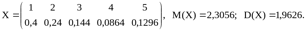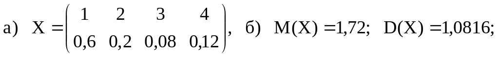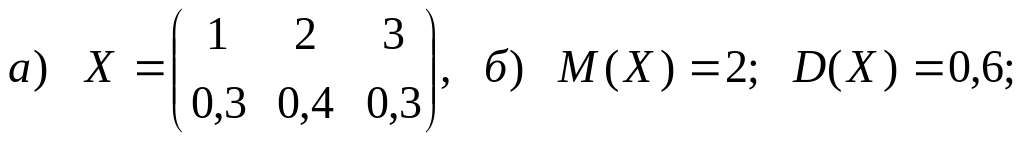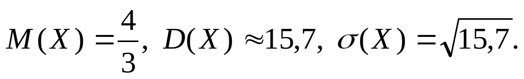 Ответ: Р3 = 0,4; М(Х) = 1,2; D(Х) = 8,16; σ(Х) = 2,86.