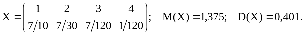 Ответ: М(Х) = 3,2; D(Х) = 0,96; σ(Х) = 0,979