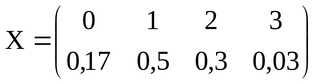 М(Х) = -20,3 + 10,5 + 30,2 = 0,5