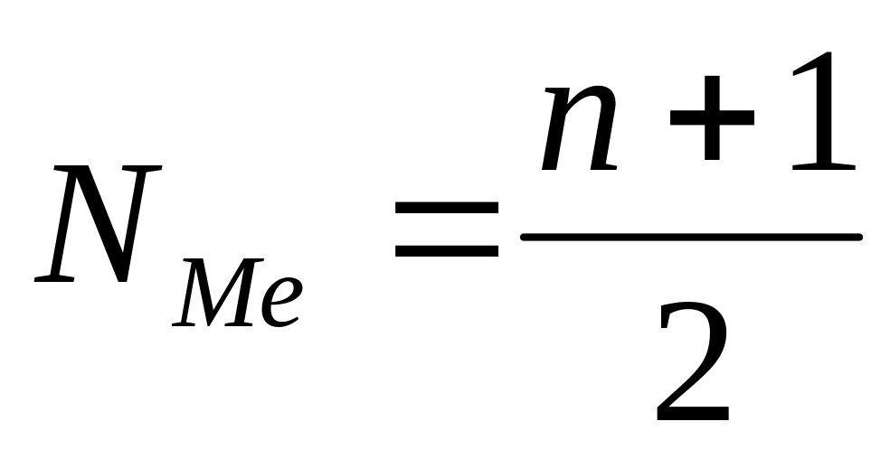 Для определения медианы сначала определяют ее место в ряду, используя формулу 5.2: