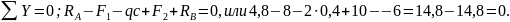 Для проверки составляем сумму проекций всех сил на вертикальную ось y: