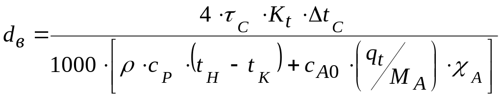 Из формул алгоритма расчета, поз. №5 – 10 получите уравнение для расчета внутреннего диаметра трубок