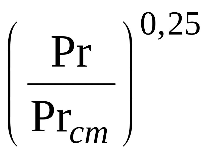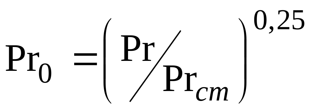 Отношение чисел Прандтля к Прандтлю стенки для реакционной массы в степени 0,25 (характеризует направление теплового потока)