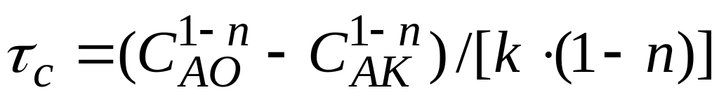 Конечная концентрация реагирующего компонента А на выходе из реактора |