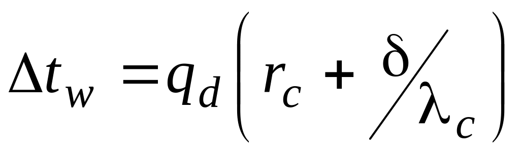Движущая сила процессов теплопроводности через ржавчину, стенку трубки, накипь и солевой камень |