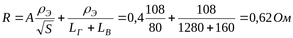 Теперь находим сопротивление растеканию принятого нами группового заземлителя: