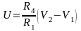 Обобщенный дифференциальный усилитель (ДУ), схема которого приведена на рис. 7, используется для вычисления разницы двух напряжений, каждое из которых умножено на определенную константу (задаваемую резисторами).