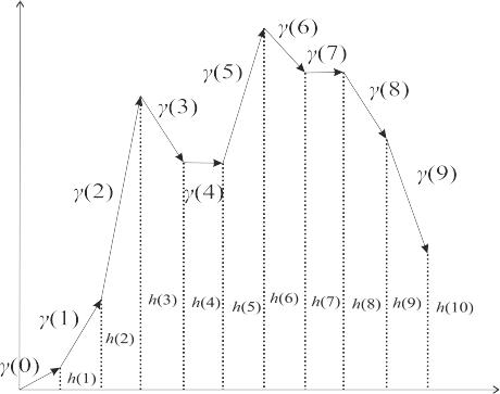 Пример использования: В меню Процедуры выбрать команду Ввод. Далее ввести контур: {1+i, 1+3i, 1+9i, 1-3i, 1, 1+6i, 1-2i, 1, 1-3i, 1-5i, -6i}. Введённый контур имеет вид, показанный на рис. выше. Для вычисления его широт необходимо в меню ЭЭГ-2 выбрать команду Вычислить размахи импульса. В результате выполнения команды в окне А останется контур, содержащий вычисленные значения ширины импульса. Действительная часть контура равняется вычисленным значениям широт, мнимая – нулю.