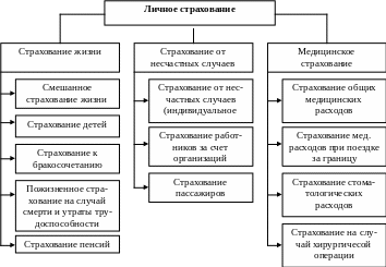 Рис.3. Классификация личного страхования по подотраслям и видам страхования