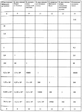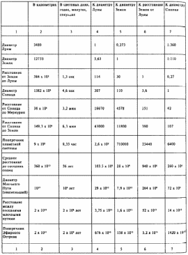 2. Линейные протяжения их в километрах. Последнее внизу число выражает величину поперечника всей известной вселенной, состоящей примерно из миллиона млечных путей, или спиральных туманностей. Каждая из туманностей содержит примерно 100 миллиардов солнц. Каждое солнце окружено примерно десятком больших планет. Таким образом, известная вселенная, или Эфирный Остров, содержит не менее триллиона (1018) больших планет. Не менее десятой доли их (1017) пригодно к жизни. Их столько, что каждому жителю Земли можно бы подарить 50 миллионов больших планет, пригодных к жизни, и столько же солнц.