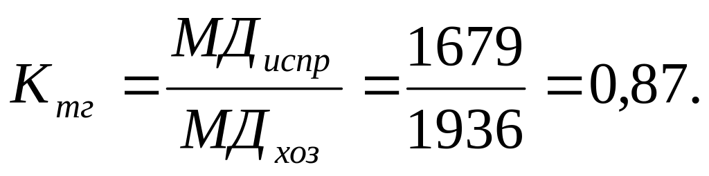Количество машино-дней в хозяйстве (МДхоз) определяется суммированием машино-дней в исправном состоянии и ремонте: