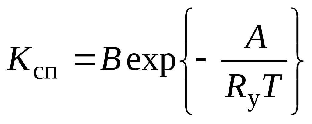 В соотношение (1.5.8) входит константа скорости прямой реакции . Расчеты и опытные данные показывают, что значение , а, следовательно, и скорость реакции при увеличении температуры растут очень быстро.