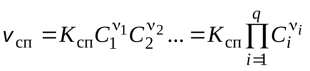 где – объемно-мольная концентрация, – число молей i-го газа, вступающего в реакцию.