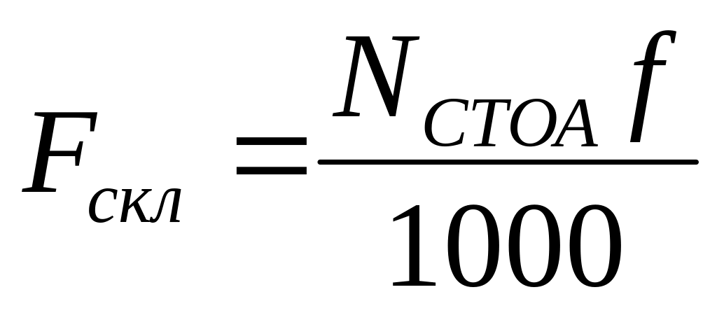 где f – площадь склада, приходящаяся на 1000 автомобилей.