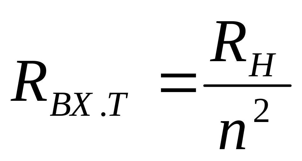 В Здесь - сопротивление нагрузки одного транзистора для переменного тока. Для его нахождения мысленно разорвем провод источника питания. Схема для переменного тока от этого не нарушится, так как в режиме А через источник питания Еп переменный ток не протекает. Но после разрыва входное сопротивление идеального трансформатора Т2 между крайними выводами I обмотки, как известно из теории цепей,