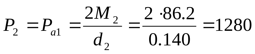 Окружное усилие на червяке, равное осевому усилию на колесе