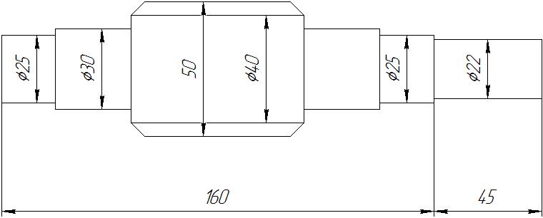 Для соединения его с валом электродвигателя целесообразно выбрать диаметр выходного конца как у электродвигателя – 22 мм и соединить их стандартной муфтой. Диаметры подшипниковых шеек – 25 мм.