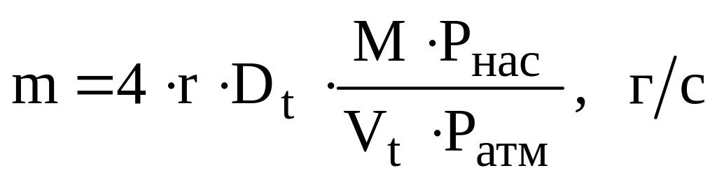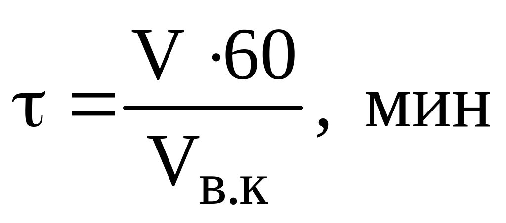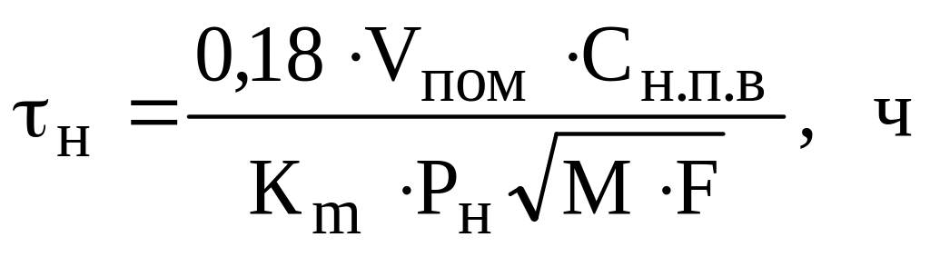 3. Если объем взрывоопасной и паро-воздушной смеси составит Vв.с > 5 % объема помещения, то необходимо определить время испарения ацетона в количестве, достаточном для образования взрывоопасной смеси в 5 % объема помещения по формуле: