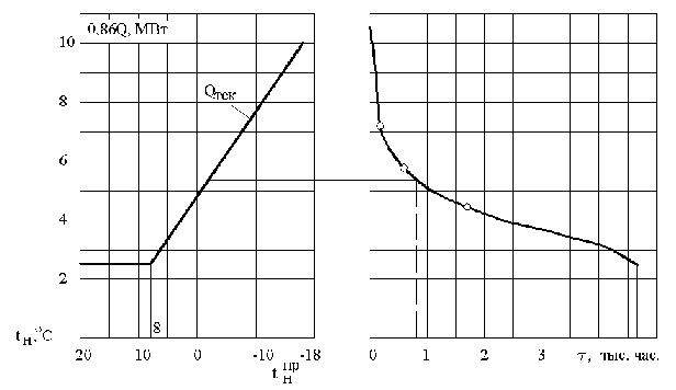 Рис. 2. График отпуска тепла блоком котлоагрегатов котельной