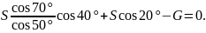 2) ∑ Fy = - S2cos 50° - Gcos 20° = 0.