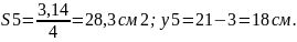 S3 = S4 = 1 / 2 × 7,5 ×42 = 157,5см2;