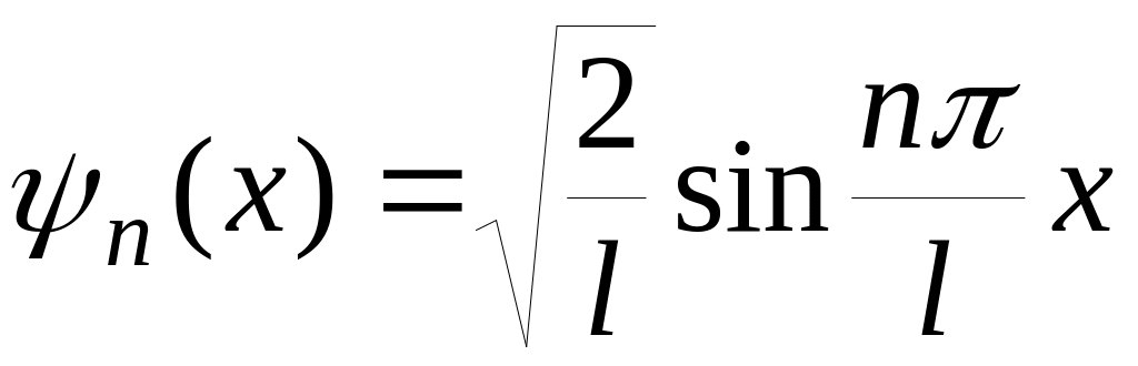 Рассмотрим частицу, потенциальная энергия которой в интервале координат [0,l] равна нулю, а вне этого интервала бесконечно велика. Внутри такой потенциальной ямы стационарное уравнение Шредингера имеет вид такой же, как для свободной частицы (U=0):