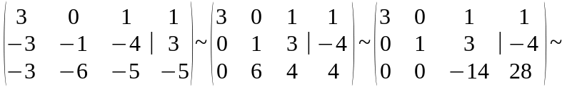 разделили третью строку на (-14), а первую на 3.