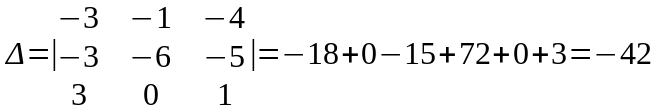 Последовательно заменив в первый, второй и третий столбцы столбцом свободных членов, получим: