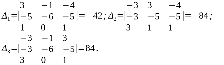 Согласно формулам Крамера, получим решение системы: