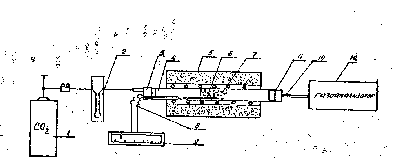 Кокстың реакциялық қабілеттілігін зерттеуге арналған қондырғының схемасы 6-суретте келтірілген. Көмір қышқыл газдың мөлшерін өлшеу үшін 2 реометр арқылы I балоннан өтеді. Берілген белігіл жылдамдықпен көмір қышқыл газ 3 тығын арқылы 5 құбырлы пеште орнатылған 4 реакциялық кварцты құбырға келіп түседі. Кварцты құбырдың ортасындағы 6 нихромды торда 7 зерттелетін кокстың мөлшерісалынған. Кокс қабатының ортасында потенциометрмен жалғасқан 8 термопара орналасқан. Газ тәрізді жану өнімдері 11 тығынға орнатылған 10 құбыр арқылы пештен шығарылады. Газ сынамалары периодты түрде қайта алынады және 12 газ талдағышта көміртегі тотығы мен көмір қышқыл газымен анализ жасайды.