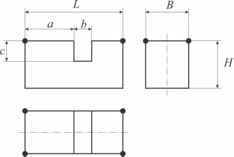К перевозке предъявлен однородный груз массой 20,6 тонн, размерами H = 2 м; B = 1,8 м; L = 5 м; a = 0,5 м; b = 1 м; c = 0,2 м; d = 0,4 м
