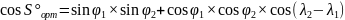 где Sорт — длина пути по ортодромии в градусах дуги; φ1 и λ1— координаты исходной точки ортодромии; φ2 и λ2 — координаты конечной точки ортодромии.