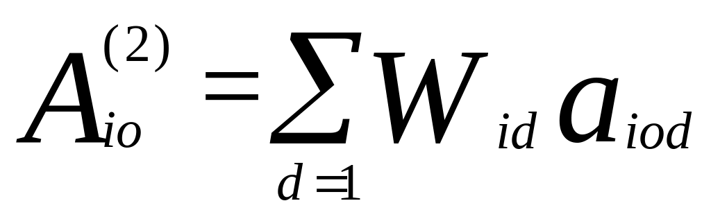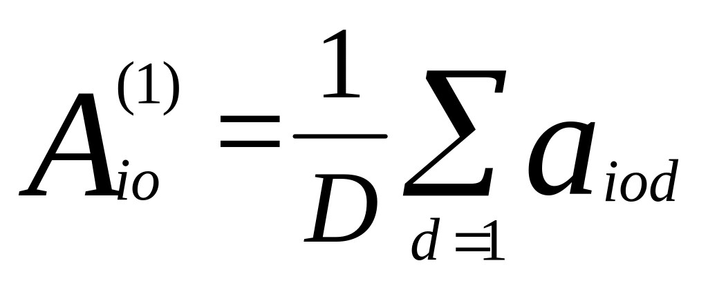 де – ставлення людини (або групи) i до об'єкта о (цифра у верхньому індексі означає номер даної моделі ставлення); аіоd/ – оцінка людини (або групи) i об'єкта о стосовно атрибута d; d – індекс атрибутів, d= 1, ... D; і – індекс окремої людини (групи), і= 1, ... I; о – індекс об'єктів, о = 1, ... О.