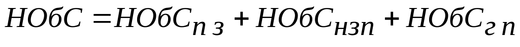 Потребность в оборотных средствах (денежное выражение указанного выше вещественного содержания оборотных фондов и фондов обращения) рассчитывается как общий норматив оборотных средств по формуле (9):