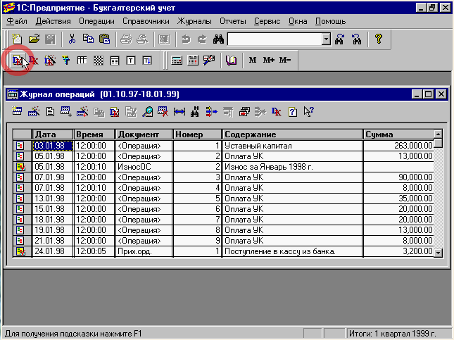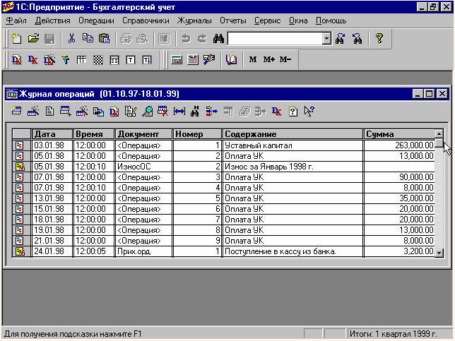 На экране при этом появится окно в которое выводятся основные данные об операции, причем каждой строке журнала соответствует одна операция.