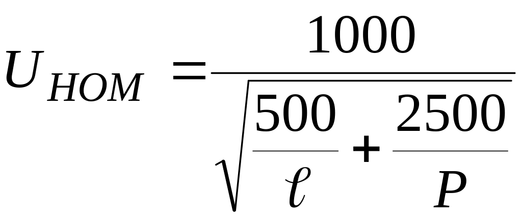 В практике проектирования для выбора рационального напряжения используются кривые, данные по пропускной способности и дальности линий электропередачи или эмпирические формулы, в частности, формула Г.А.Илларионова, дающая удовлетворительные результаты для шкалы напряжений от 35 до 1150 кВ,