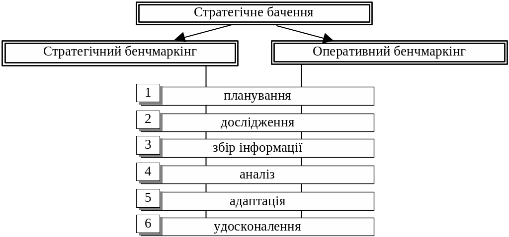 Бенчмаркінг здійснюється на стратегічному та оперативному рівнях управління.