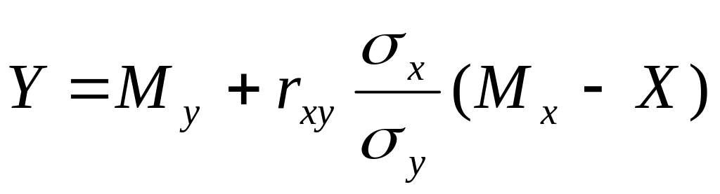Уравнение регрессии, связывает с некоторой вероятностью средние экспериментальные оценки значений Mx и My , например, через коэффициент линейной корреляции rxy