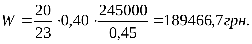 Бюджет рекламної кампанії W оцінюється відносно реально існуючого та прогнозованого торговельного обороту за формулою