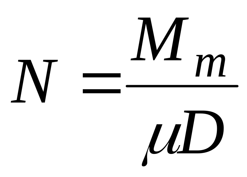 где μ − коэффициент трения фрикционной обкладки колодки и шкива (0,35...0,42); D − диаметр тормозного шкива, м.