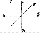 6. Как изменится момент инерции двух материальных точек массами m, если ось ОО1 перевести: а) в положение I; б) в положение II?