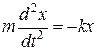 Пример 2.1. Найти закон движения материальной точки, движущейся по прямой под действием упругой силы F = –kx. Движение начинается из начала координат x=0 в момент времени t = 0 с начальной скоростью υ0.