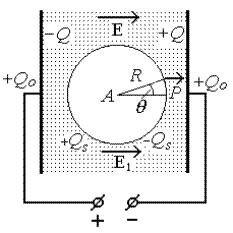 Q0 – заряд на обкладках конденсатора. Qд – заряд, возникающий на краях диэлектрика из-за поляризации в электрическом поле.